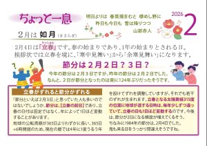 TOPお知らせ2月のちょっと一息TOPお知らせ2月のちょっと一息お知らせCategoryすべてお知らせ採用ブログArchiveすべて選択するカテゴリーを選択アーカイブを選択2026.02.26ブログ2月のちょっと一息 お知らせ一覧に戻る